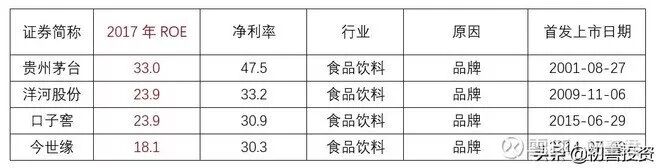 第二种是品牌。品牌带来高净利率,我国消费品上市公司里,凭借品牌获取高净利率的很少,毕竟中国人习惯西方人的奢侈品。但是我们有白酒,有四家白酒公司凭借着高净利率进入了高ROE榜单,分别为贵州茅台、洋河股份、口子窖和今世缘,净利率分别为47.5%、33.2%、30.9%和30.3%。真的是你们有奢侈品,我们有白酒。
